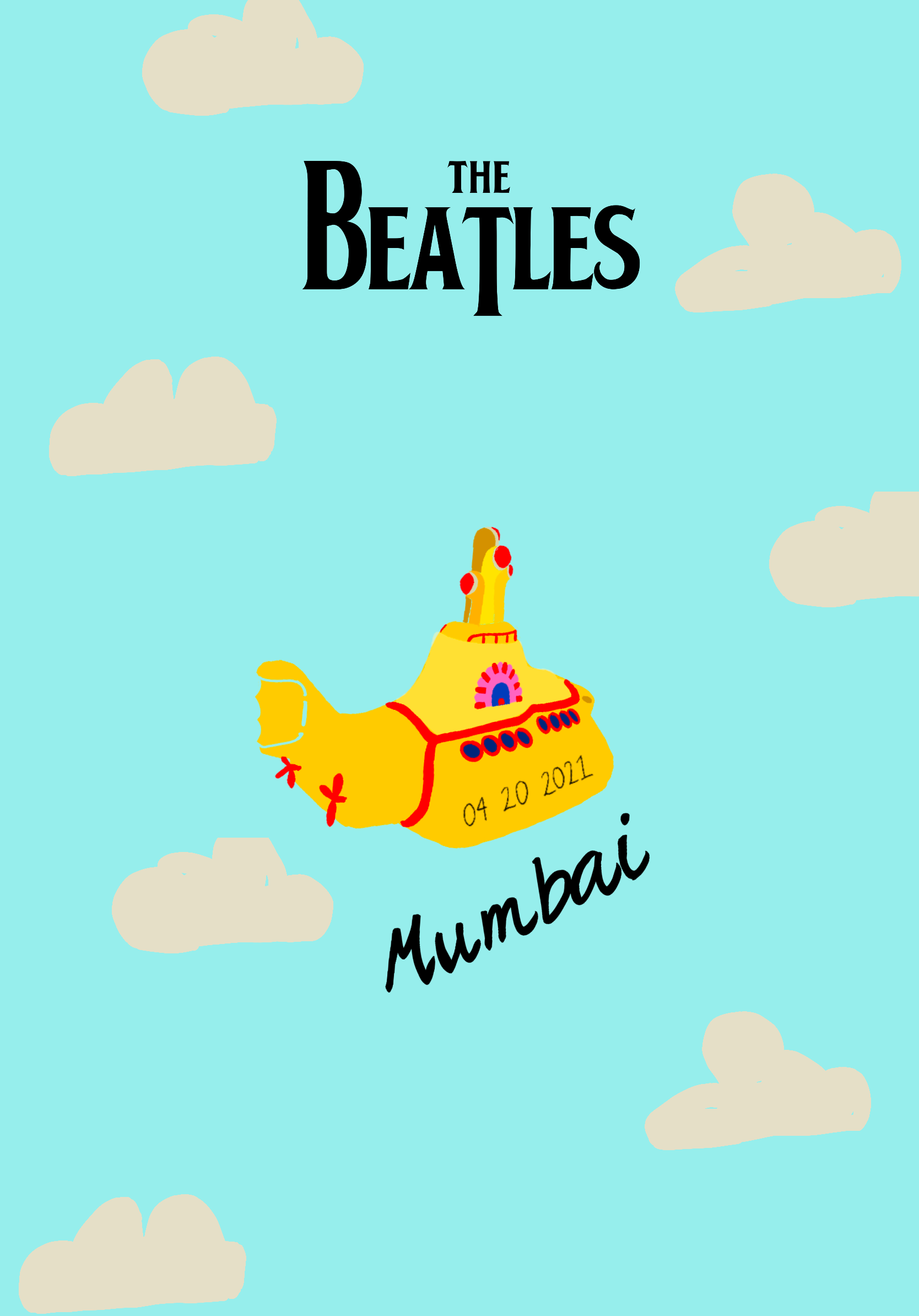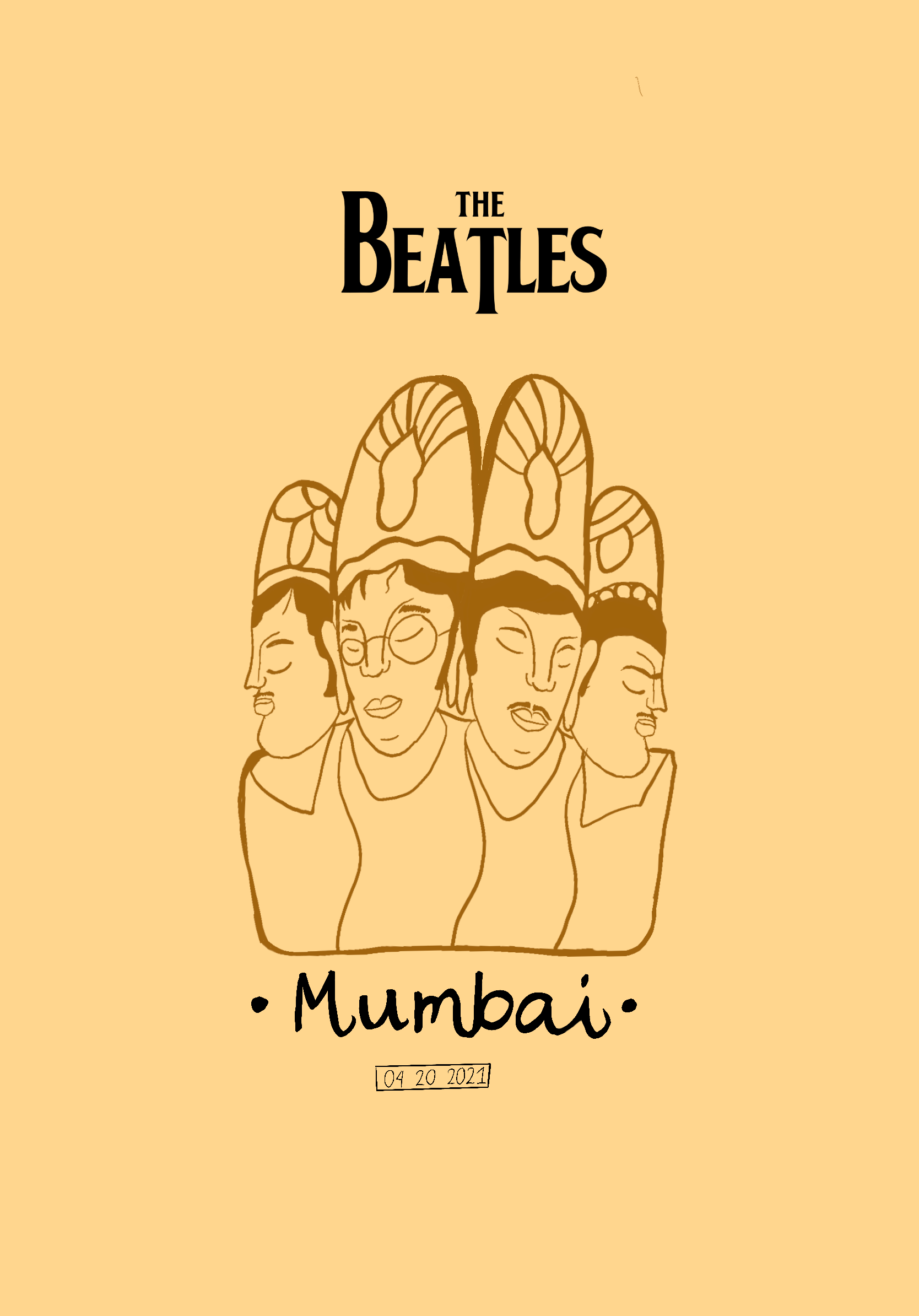 Illustration and concept for concert of the Beatles in Mumbai. Using only illustrations, we had to show a merge of the two concepts, The Beatles and Mumbai.